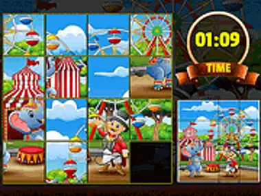 Jogue este clássico jogo de quebra-cabeça deslizante 4x4 com tema de circo. Mova as peças da imagem para formar a imagem mostrada no lado direito da tela. Toque ou clique em uma peça para fazê-la deslizar para o espaço em branco adjacente. Termine o mais rápido que puder para conseguir uma pontuação melhor. Divirta-se jogando o jogo 4x4 Circus aqui em Y8.com!