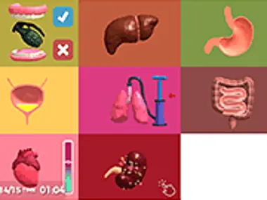 Anatomic Mayhem - Controle as funções dos órgãos humanos! No mundo real, a maioria das nossas funções corporais acontece automaticamente. Não precisamos controlar nossos batimentos cardíacos, nossa digestão ou nossa respiração (na maioria das vezes)... Mas não neste jogo! Neste jogo desafiador e acelerado, teste suas próprias habilidades de multitarefa e concentração tendo que controlar até 9 órgãos diferentes ao mesmo tempo para manter o corpo humano vivo! Cuidado com os erros! Pular um batimento cardíaco, prender a respiração por muito tempo, esquecer de digerir sua comida... se você não for cuidadoso o suficiente, poderá acabar morto!