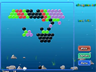 Shoot the balls and ricochet them to hit the same color. Miss and more balls grow. Gets hard.