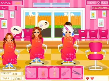 Job Game Serve each customer before the time otherwise life loses. Gain target money to upgrade all items. Use the mouse to drag the customers to the hairdresser chairs and serve them by dragging the right tool with selected items.