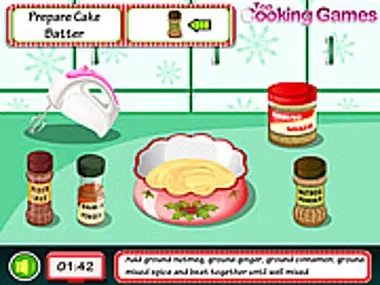 O Natal está quase a chegar e tudo o que precisamos são algumas ideias exóticas para uma Festa de Natal perfeita! Neste Natal, tens de preparar um delicioso e apetitoso Bolo de Natal. Queres exibir as tuas habilidades culinárias para a tua família e amigos neste Natal? Tudo o que tens de fazer é reunir todos os ingredientes, juntar o material de decoração e preparar-te para fazer um bolo fantástico que seja atraente e tenha um sabor delicioso! Começa a jogar o Christmas Cake Game e reúne o maior número possível de ideias criativas para o teu lindo Bolo de Natal que se aproxima! Partilha o aspeto final do teu Bolo de Natal com os teus pais e amigos e surpreende-os! Desejamos-te um Feliz Natal!