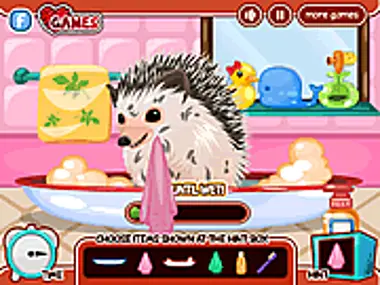 Limpe e cuide do seu novo bichinho super fofo. Este ouriço está pronto para correr e brincar lá fora, mas você precisa ter certeza de que ele está seguro e longe do falcão. Depois traga-o para dentro para um banho e uma sessão de vestir.