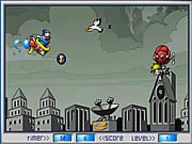 Destroy the radio antennas and avoid the other ships that fly over the city. Fly your aircraft and throw musical bombs.