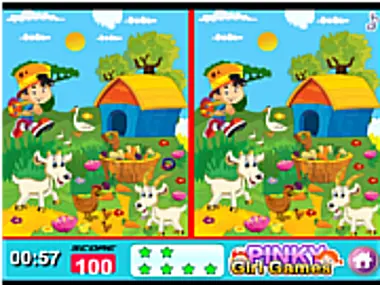 Este garotinho está brincando em sua fazenda, onde galinhas fofas, gansos e cabras estão circulando livremente. Este garoto adora passar seu tempo na fazenda e brincar com esses bichinhos adoráveis. Neste momento, ele está se divertindo muito por lá. Quer se juntar a ele e se divertir tanto quanto ele? Então, encontre as diferenças nestas imagens idênticas da cena da fazenda onde o garoto pula de alegria no ar. Explore as imagens e encontre todas as diferenças no tempo determinado, ou aprimore suas habilidades de observação completando a tarefa no menor tempo possível. Então, meninas! Vão em frente e divirtam-se com este jogo de encontrar as diferenças!