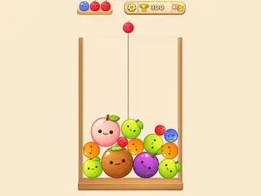 Mescle frutas para formar maiores e fazer pontos. Não deixe o recipiente transbordar para continuar jogando.
