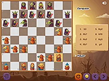 O Halloween está aí à porta. Se gosta de xadrez, vai adorar esta novíssima versão de Halloween para as festas. Nada como um jogo de xadrez clássico e assustador, onde cada peça é criada com a intenção de amedrontar. Desfrute de 3 temas assustadores diferentes com IA de computador fácil, moderada e difícil. Pode jogar como branco ou preto neste jogo para dois (2) jogadores, com um sistema de dicas para guiar os seus movimentos. Sim, incluído um divertido tema casual de abóbora, adequado para todas as idades.