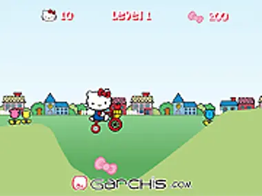 Help the most famous and cutest little kitty to ride her beautiful bike. She needs to collect all the pink bows you can find in her path.