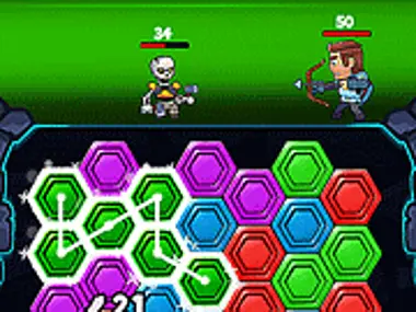 Em Hexa Dungeon, você desfruta do jogo de aventura de luta e combinação ao mesmo tempo. Para que o herói ataque, você deve conectar o maior número possível de elementos iguais. Com poder suficiente, você pode desbloquear alguns disparos poderosos na parte inferior. Não deixe o inimigo se aproximar e destrua-o o mais rápido possível. Divirta-se jogando este jogo aqui no Y8.com!