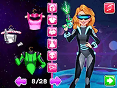 Intergalactic Fashion Show é um divertido jogo de transformação e, mais tarde, um maravilhoso desfile de moda espacial! É uma ideia estranha e divertida, mas as princesas tiveram uma ideia de outro mundo para usar roupas espaciais para o Intergalactic Fashion Show! Você pode ajudá-las com a maquiagem? Vá ao Spa primeiro e faça-as sentir-se relaxadas durante a transformação. Depois escolha o que vestir do guarda-roupa espacial, como arranjar o cabelo delas e quais acessórios escolher para completar o visual do traje espacial super incrível de outro mundo! Deve ser um show espacial perfeito! Divirta-se jogando este jogo de desfile de moda aqui no Y8.com!