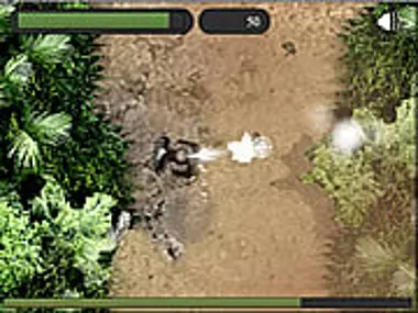 Drive over the attacking soldiers and shoot them. Try to dodge their fire as much as possible.