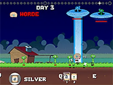 Aliens are attacking your farm! Fight the aliens by shooting seeds at them, or use the seeds to grow more ammo. Protect the piggies!