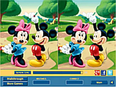 Jogue o Jogo das Diferenças do Mickey e da Minnie. Neste jogo há imagens com o Mickey e a Minnie Mouse, e em algumas delas o Mickey e a Minnie estão com os seus amigos. Em cada nível há imagens diferentes. As duas imagens parecem iguais, mas não são. Encontre as diferenças neste jogo fofo. Em cada nível há 5 diferenças. Tente encontrar todas as 5 diferenças no tempo disponível. Se não conseguir, então pode remover o tempo e jogar à vontade. Tente não cometer mais de 5 erros, porque o jogo acabará. Use o botão esquerdo do seu mouse para clicar na diferença quando encontrar uma. Divirta-se muito com o Mickey e a Minnie!