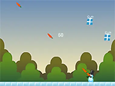 Shoot your nose carrots into the air and try to hit the falling presents.