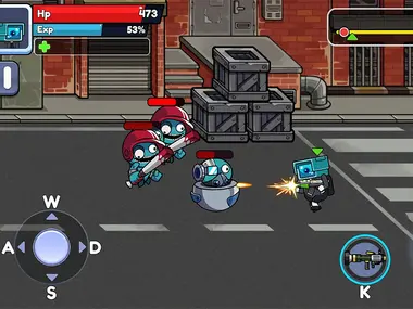 Em Space Survival - Rainbow Friends Monster, você joga como um soldado espacial futurista armado com armas poderosas, lutando contra ondas de monstros coloridos peculiares, mas ameaçadores, em um campo de batalha urbano. O jogo apresenta jogabilidade de rolagem lateral onde você deve se mover estrategicamente e derrubar inimigos com tiros precisos. Derrote os monstros que se aproximam para ganhar pontos de experiência e moedas, que podem ser usados para aprimorar seu equipamento. Cada nível se torna progressivamente mais difícil com novos tipos de monstros robô, como inimigos empunhando bastões de beisebol com capacetes vermelhos. Sobreviva ao caos, suba de nível e elimine cada monstro que ameaça sua missão!