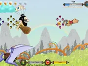Grab as many acorns as you can to earn a golden acorn. Golden acorns can be used as ammunition against your enemies or to progress through the game. Toss Blue Ptero your golden acorns to reach the quota (bottom-left bar) and clear the level.Watch out for enemies and obstacles though! Your health bar is on the bottom right.