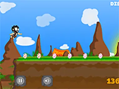 Fuja das erupções vulcânicas e resgate o máximo de ovos que conseguir. Stone Age Trouble é um endless runner e você ganha maior velocidade e mais pontos ao resgatar os ovos.
