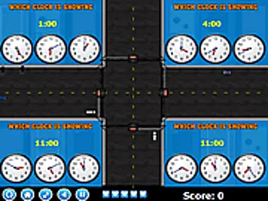 Este é um jogo de controle de tráfego onde você controla o fluxo de tráfego iniciando e parando o tráfego em uma faixa clicando em um relógio que mostra a hora solicitada.