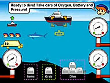 Dive your submarine for treasure. Get money from treasure to buy better sub. Go deeper for more gold