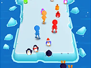 There are dozens of penguins marching towards you. Manage to find your way through the finish line.